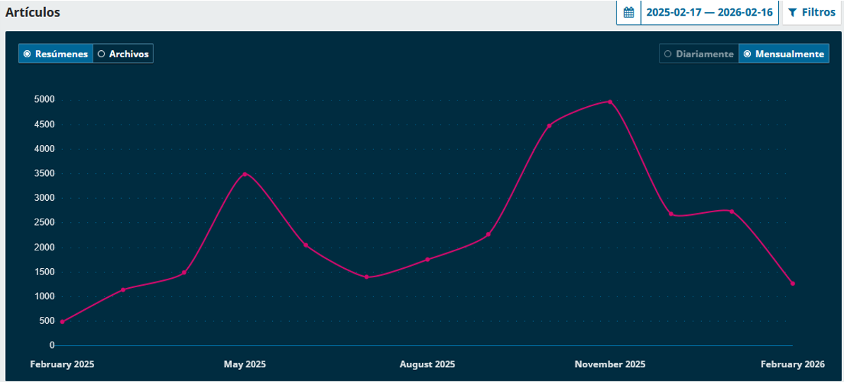 | Título | Consultas del resumen | Visualizaciones de archivo | HTML | Otro | Total | |