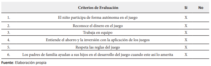 Para medir la comprensión de los conceptos financieros en los niños, la educadora ha opinado que ha evaluado a sus estudiantes mediante juegos en el aula dibujando, o coloreando y dramatizando mediante evaluaciones formativas. En cuanto a la motivación de los niños para aprender sobre los conceptos vinculados a las finanzas, la docente manifestó que lo ha valorado con el uso de los juegos en la casa.