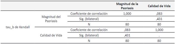 magnitud de la psoriasis no está relacionada significativamente (0,43) con la